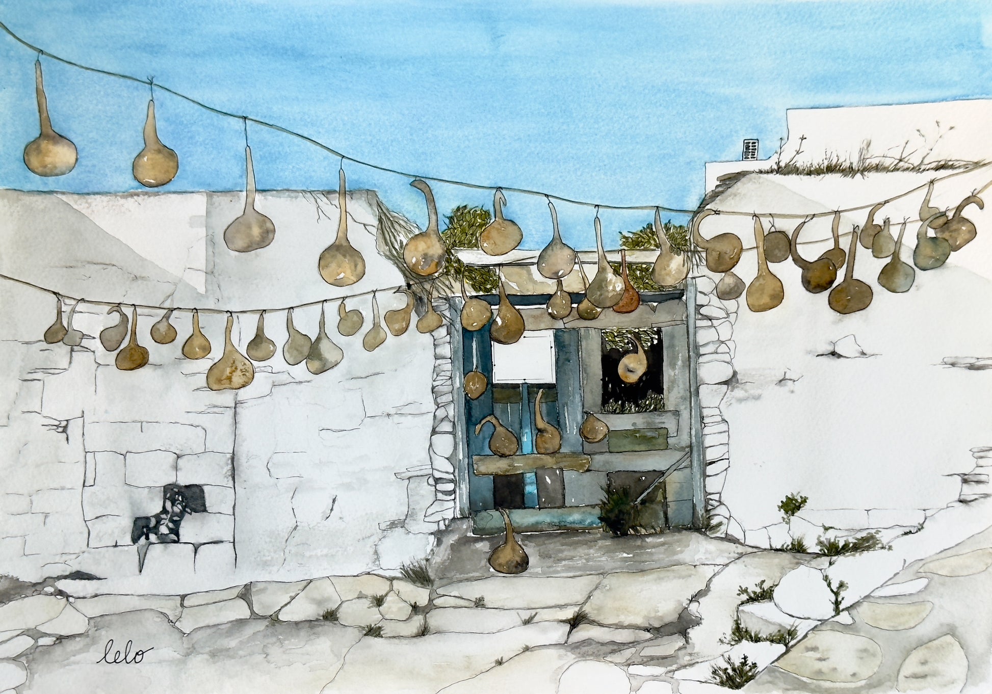 ORIGINAL WATERCOLOUR - "Greek Tecomates", Lipsi, Greece
